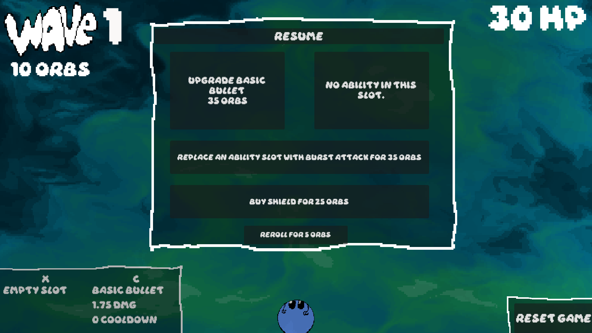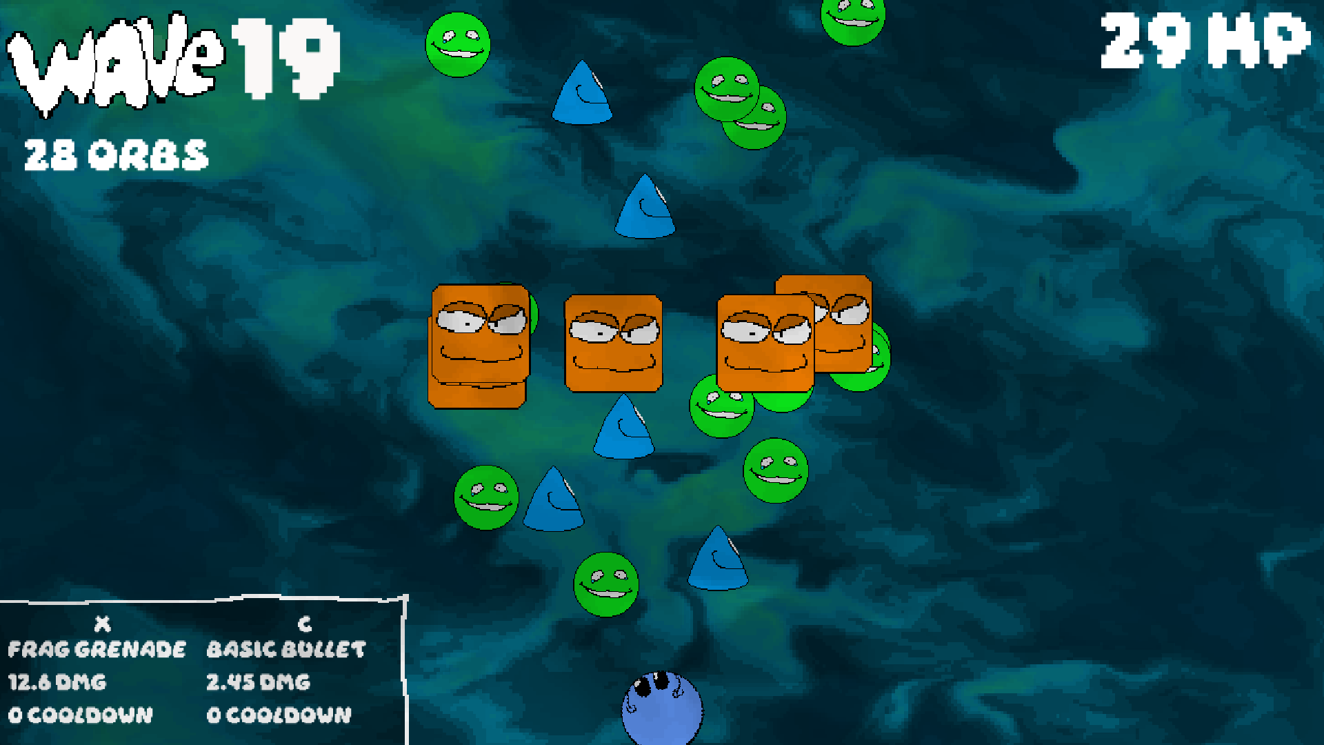 In this game you are GOOBERT. Goobert has to fight off waves of enemies with various different abilities he has.... but first he needs to unlock them. As you fight off the enemies you will gain orbs which can be used to buy new abilities and upgrade existing ones.